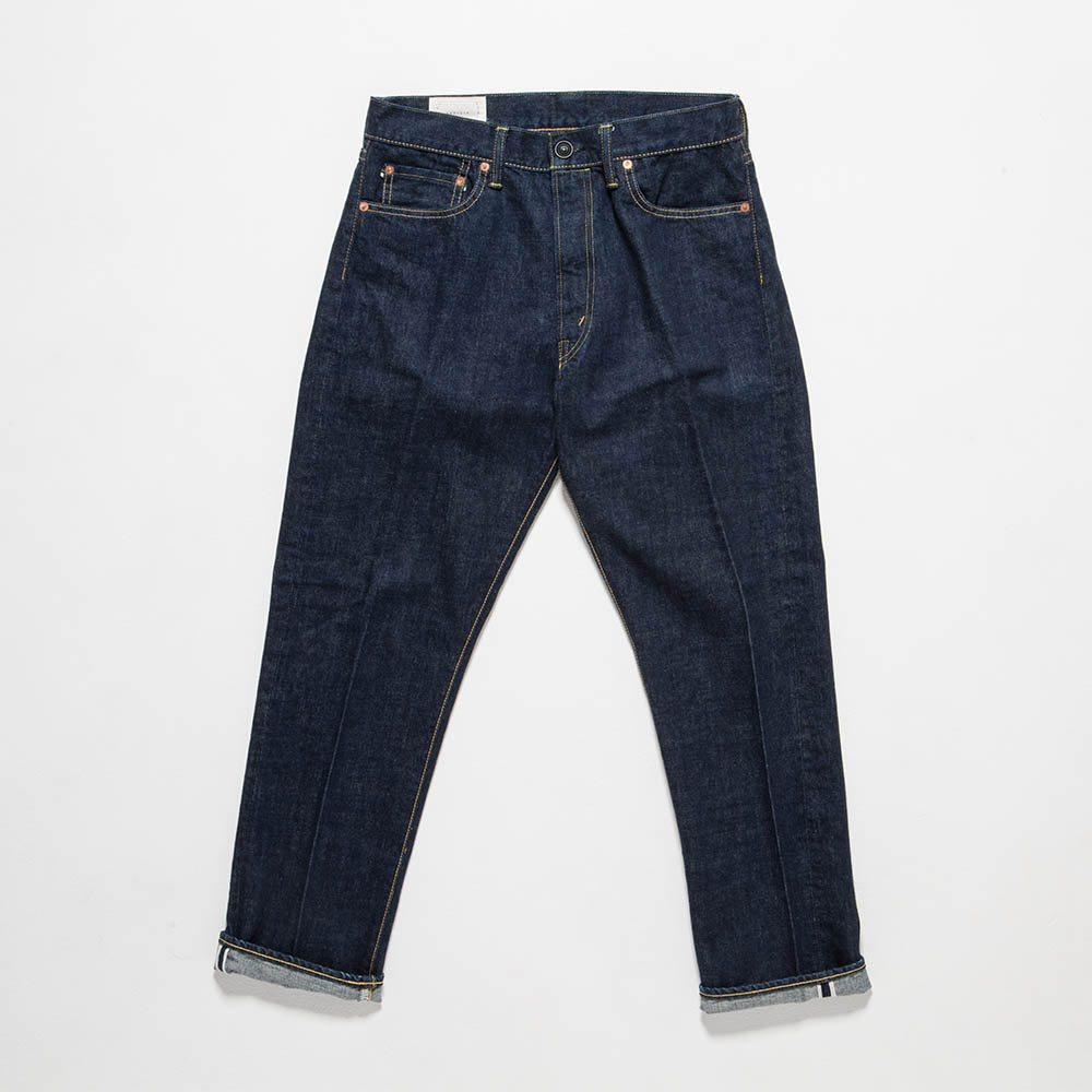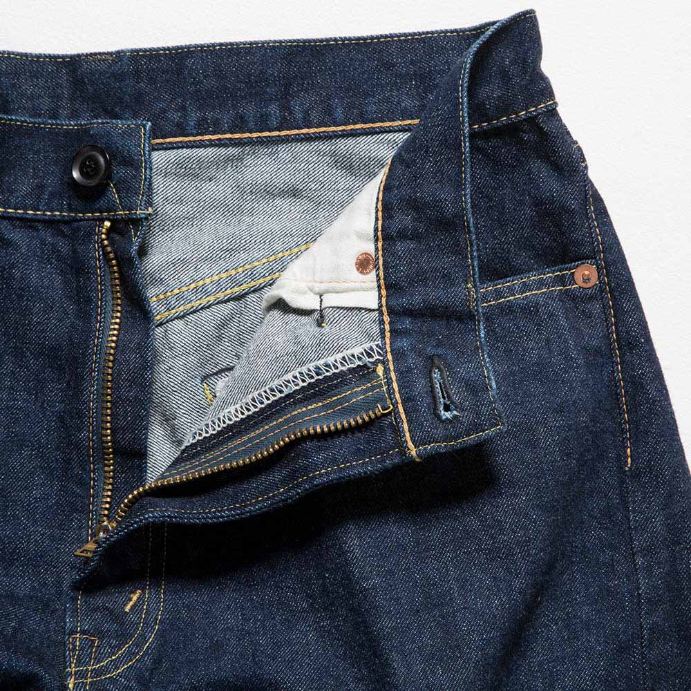 生地は、岡山の織屋さんと糸から開発したピンク耳のセルヴィッチデニムです。素材には、繊維強度が強いカリフォルニア産のサンフォーキンコットンを使用し、ヴィンテージデニムと同じような毛羽立ちと風合いがあるデニムをつくりました。もちろん、色落ちも楽しめます。ユニオンスペシャルのチェーンステッチに、1960年代のデットストックのタロンジッパーと、ディテールにもヴィンテージ仕様を取り入れました。