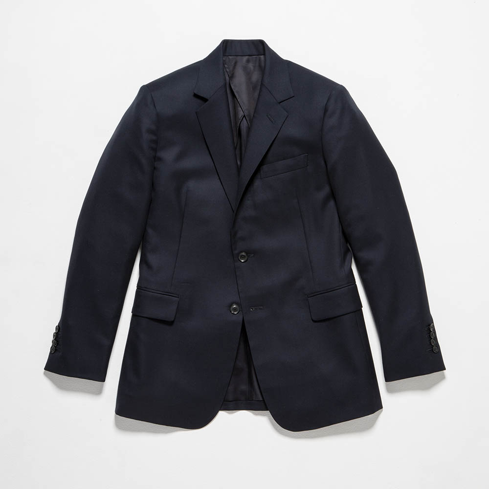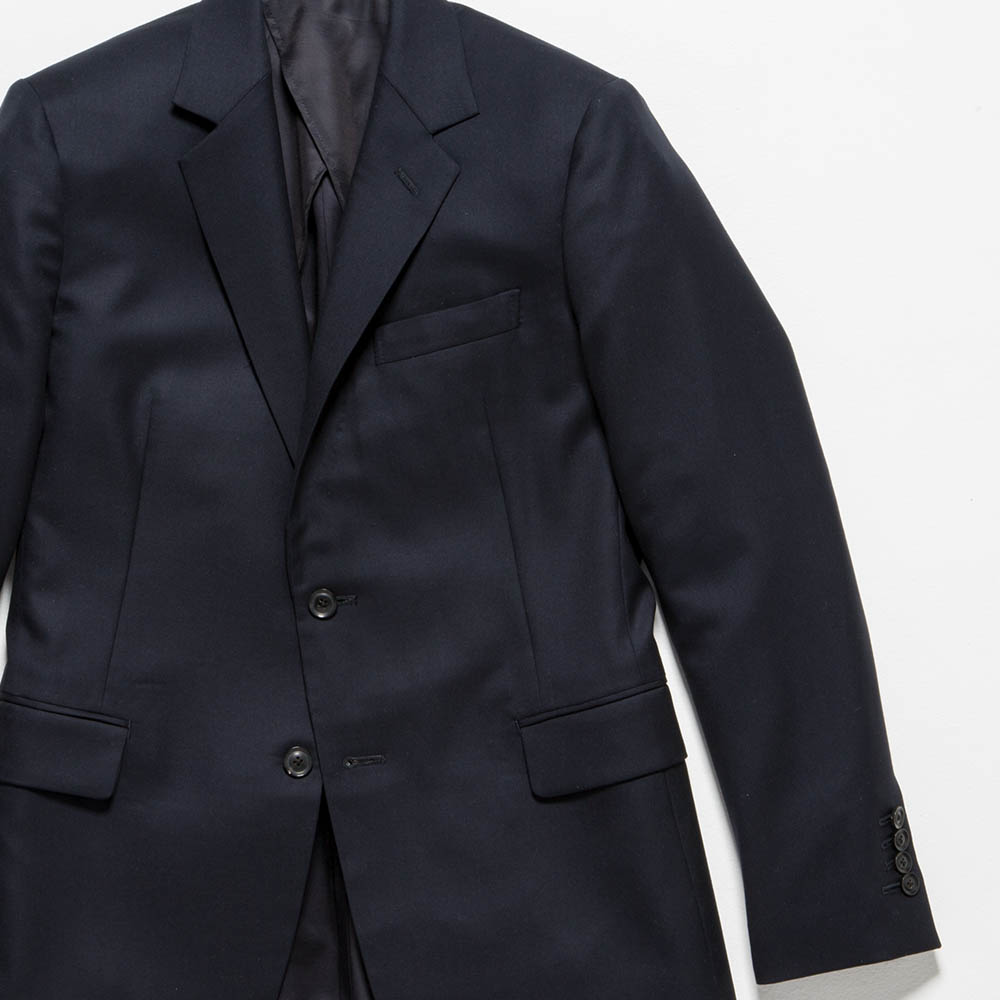 真夜中の空よりも、もっとずっと深いネイビーのジャケット。よく目をこらしてみると、熟練の職人技を随所に見ることができます。