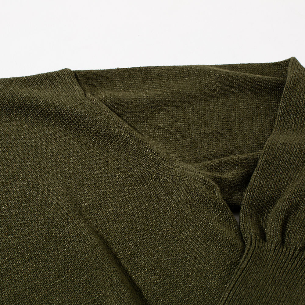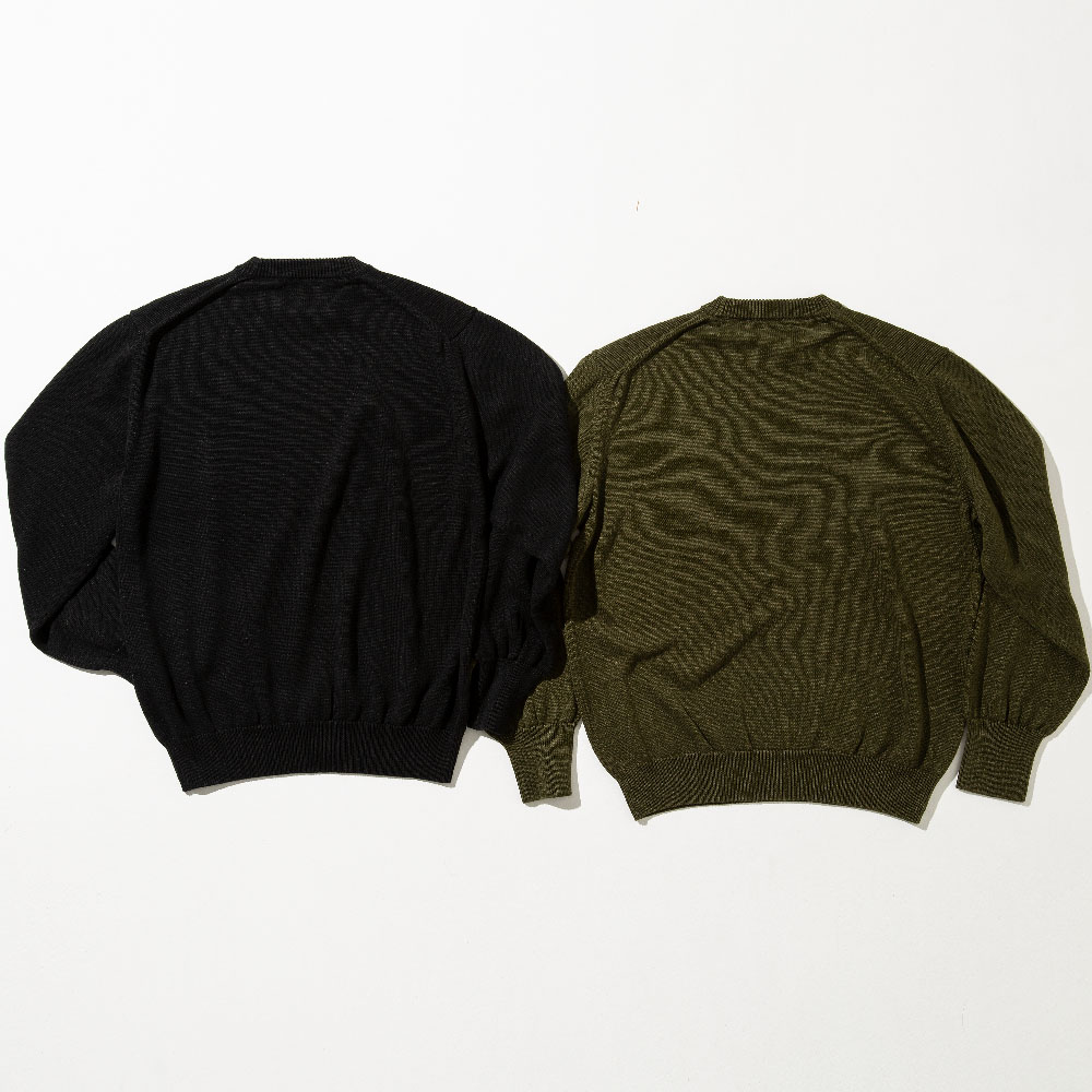 秋冬にカシミヤとウールを混紡させて編んだローゲージのクルーネックニットを、春夏仕様のコットン×リネンに素材替えしてリリースします。