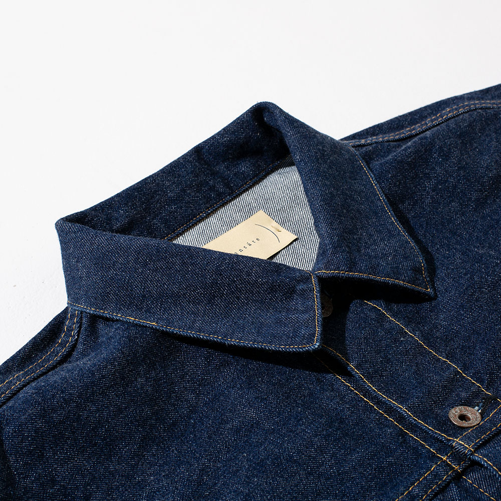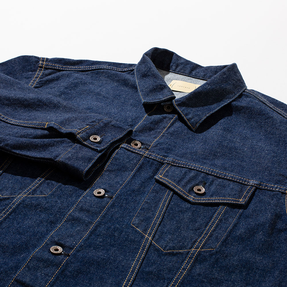 今回も男っぽく打ち付け型の”タックボタン(ネオバーボタン)”で、素材には15オンスのオリジナル セルヴィッチデニムを採用。